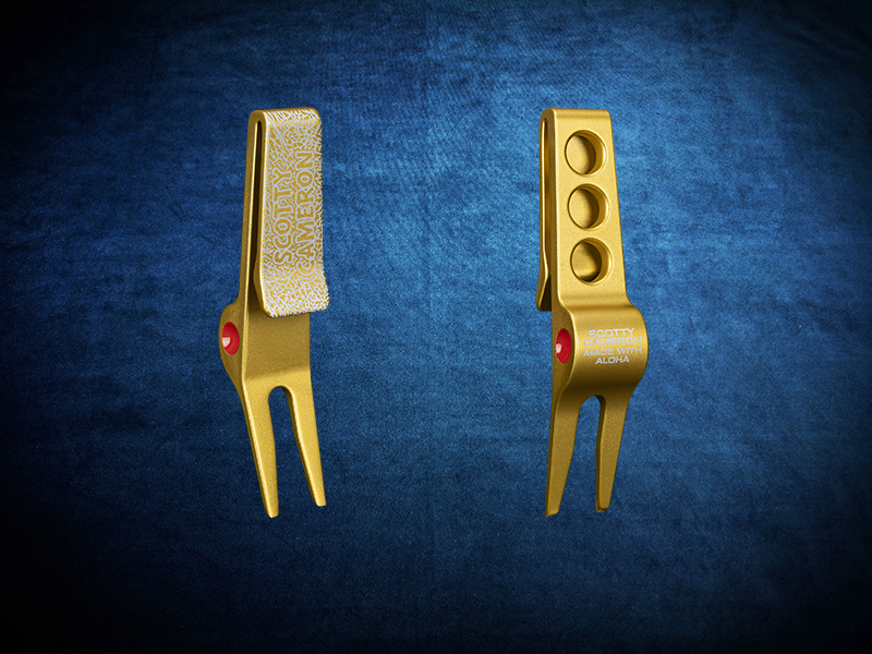 アロハの精神を体現し、その輝きを際立たせるレーザーエッチング加工が施された、精密に削り出されたアルミクリップピボットツール。ミスト状の明るいディップゴールドアルマイト加工が施されており、ボールマークの修復に最適です。特注のハワイアン・オープン・ラバウォークのデザインに加え、ミル加工されたドットには目を引く赤いペイントが施されています。