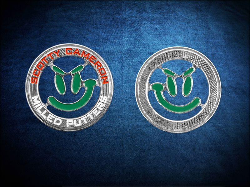 精密に削り出し、手作業で磨き上げ、手描きで仕上げた、限定生産のステンレススチール製キャメロンコイン。今回は、遊び心あふれるグラインダーが、緑、白、オレンジのアクセントが効いたレプラコーン風のキャラクターとして登場します。二重に丸みを帯びたこのコインは、ボールマーカーとしても最適です。