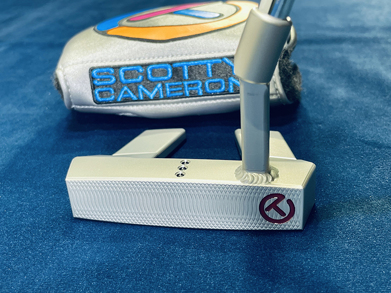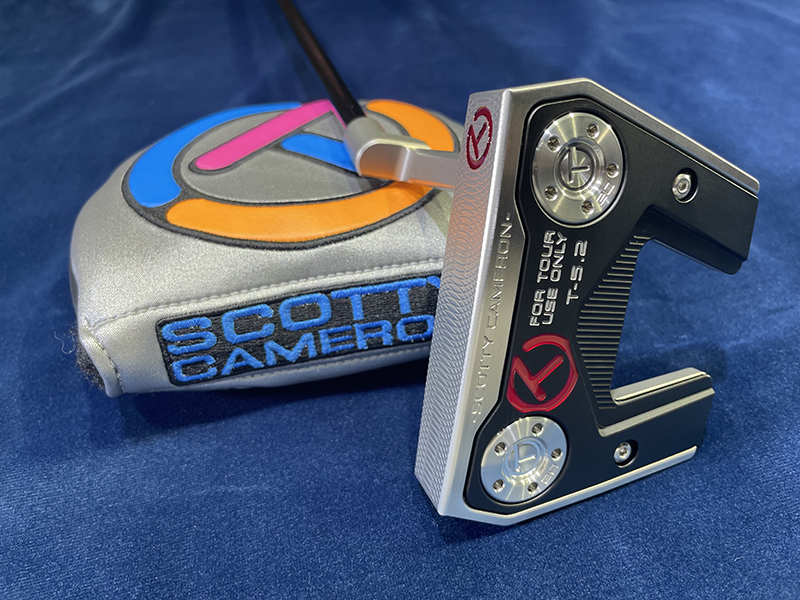 バックキャビティに3ボンブ。ヒールボンブにサークルT。フェースヒールにサークルT。ソールにサークルT、SCOTTY CAMERON 、T-5.2、FOR TOUR USE ONLY。サークルTウェイト20g。トップラインにカスタムアローアライメントマーク。 グリップ : Circle-T full-contact Black/White ヘッドカバー : Stick Figure Circle-T Charcoal/Pink/Blue/Orange Mid-Round