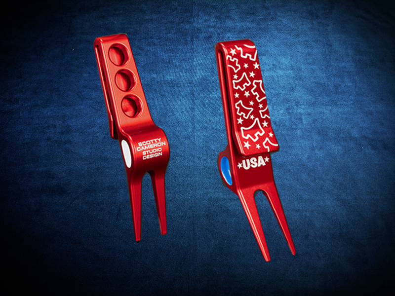スターズ&スコッティドッグのデザインが精巧にレーザーエッチングされた、スコッティの最新クリップピボットツール。 アルミニウムから精密に削り出され、鮮やかなディップレッドのアルマイト加工が施されています。 この便利なツールは、グリーンのピッチマークの修復に最適です。