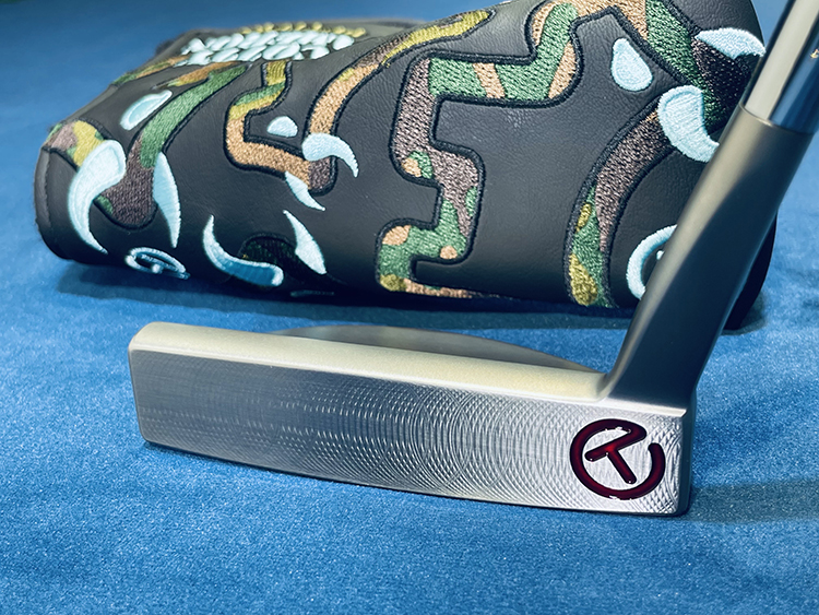 フェース面ヒール側にサークルT。ソールにサークルT、SCOTTY CAMERON、GoLo M3。サークルTウェイト、20G。スタンダードミルフェース。 グリップはCircle-T full-contact Black/White。 ヘッドカバーはCircle-T Camo Bull Dog Standard。