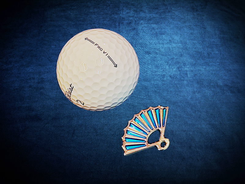 ジャパンギャラリー限定の扇子がデザインされたボールコインになります。このコインは、パターのソールウェイトを削り出すステンレスのバーから同じように削り出されたものです。