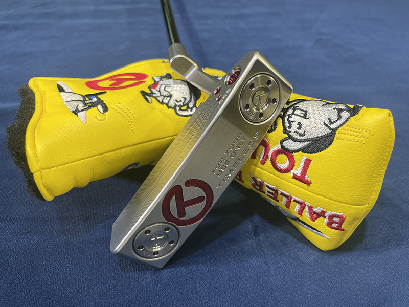 バックキャビティにダブルミルドボンブ、ボンブの中にサークルT、TOURTYPE SSS、SCOTTY CAMERON。フェース面ヒールにダブルミルドボンブ、ボンブ中にサークルT、SSS。ソールにサークルT、TIMELESS、FOR TOUR USE ONLY。サークルTウェイトT30g。フランジライン。 グリップ : Pistolini Plus Circle-T Black/White ヘッドカバー : Baller Boy Circle-T Yellow