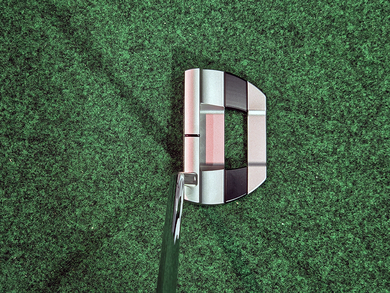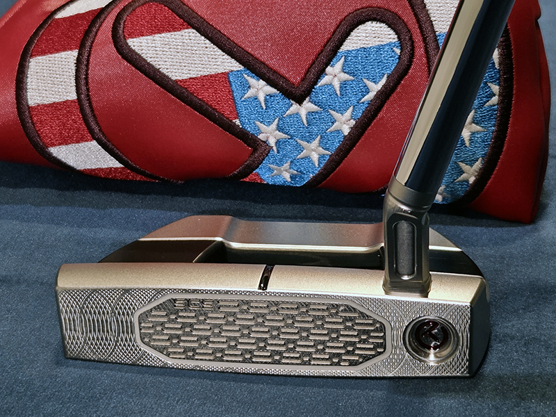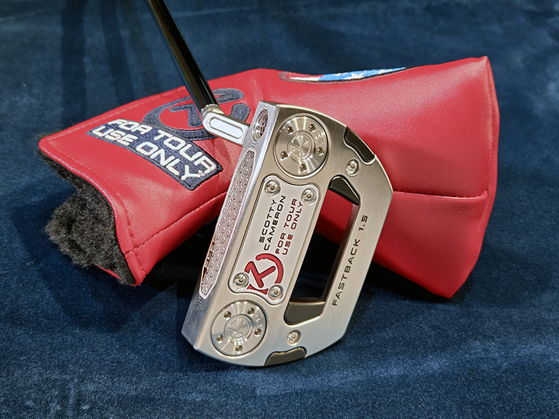 バックキャビティに3チェリーボンブ。ヒール側のボンブにサークルT。フェース面ヒール側にサークルT。ソールにSCOTTY CAMERON、FASTBACK1.5 、FOR TOUR USE ONLY。サークルTウェイト、20G。トップライン。 グリップ:Circle-T full-contact Black/White ヘッドカバー: インダストリアル サークルT USA レッド