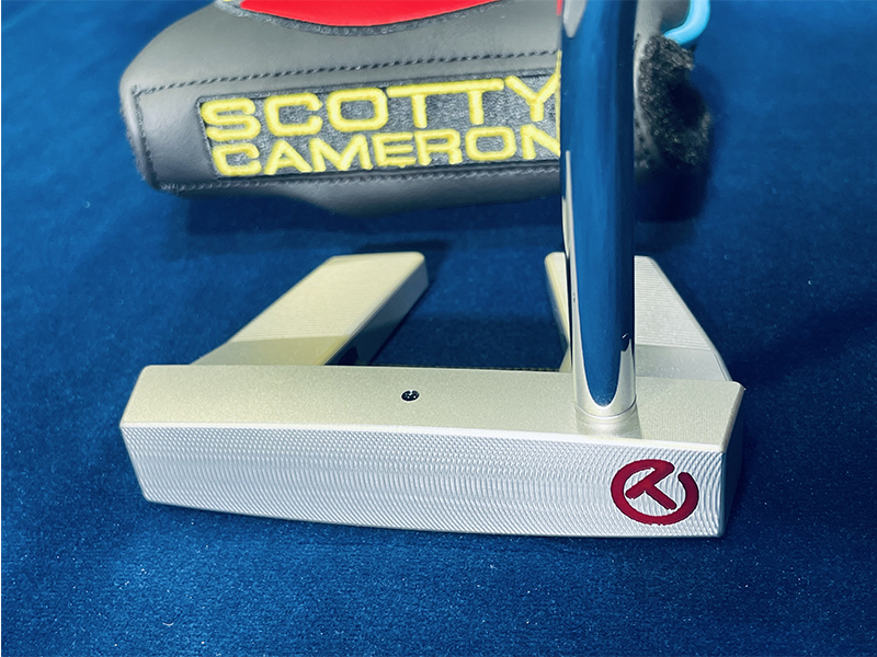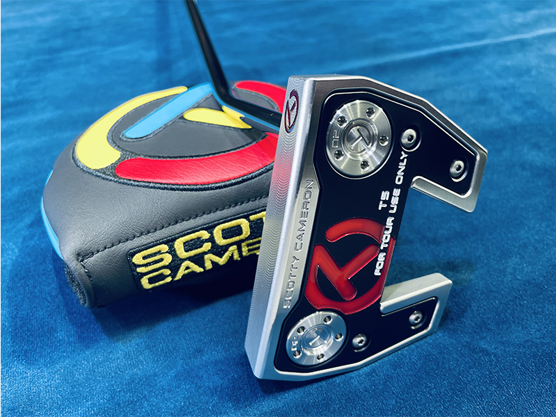 バックキャビティに3ボンブ。ヒールボンブにサークルT。フェースヒールにサークルT。ソールにサークルT、SCOTTY CAMERON 、T-5、FOR TOUR USE ONLY。サークルTウェイト20g。サイトドット。 グリップ : CT Pistolini Plus Grey/White ヘッドカバー : Circle-T Stick Figure Primary Mid Round