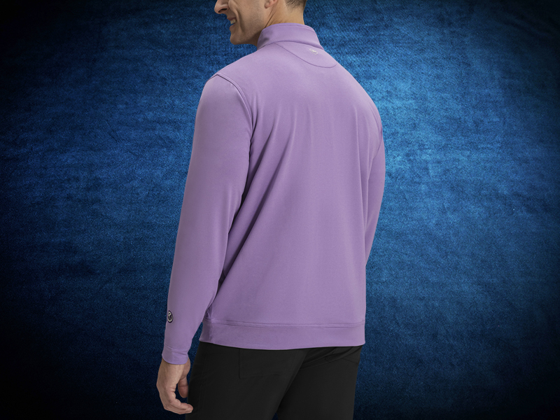 ピーター・ミラー社製のパースメランジ素材で、パープルアイリスのクォータージップ。スコッティの人気ロゴ「クラウン&カンパニー」のエンブレム、サークルT、そしてピンフラッグの袖飾りが巧みに刺繍された、完璧なプルオーバー。マイクロファイバーポリエステル89%、スパンデックス11%の混紡素材を使用した、クラシックフィットのクォータージッププルオーバーは、お手入れが簡単で、体にぴったりフィットする伸縮性を備え、どんなシーンにも活躍する万能アイテムです。