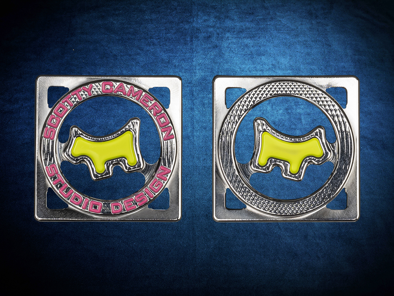 ピンクとライムグリーンで手描きされたスコッティドッグスタジオデザインのキャメロンコインは、まさに「丸が四角になる」デザイン。精密に削り出され、手作業で仕上げられたこのステンレススチール製のボールマーカーは、数量限定生産で、プレー仲間から「どこで手に入るの?」と聞かれること間違いなしです。