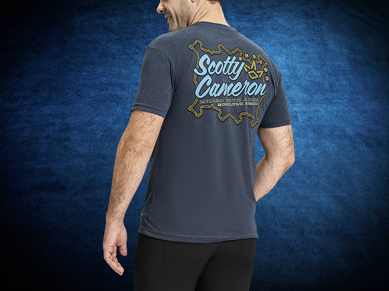 ポリネシアをテーマにしたコナクラウンのデザインは、スコッティ・キャメロンのパターがアロハの精神でミル加工されていることを示しています。背面には抽象的なスコッティドッグのバリアリーフが描かれ、重厚なアイランドバイブレーションを醸し出す両面スクリーンプリントの風景が魅力です。このプレミアムな60/40コットンポリエステル混紡のソフトバターTシャツは、リージョンブルーで、裾にはスコッティブルーのサークルTシャツが施されています。