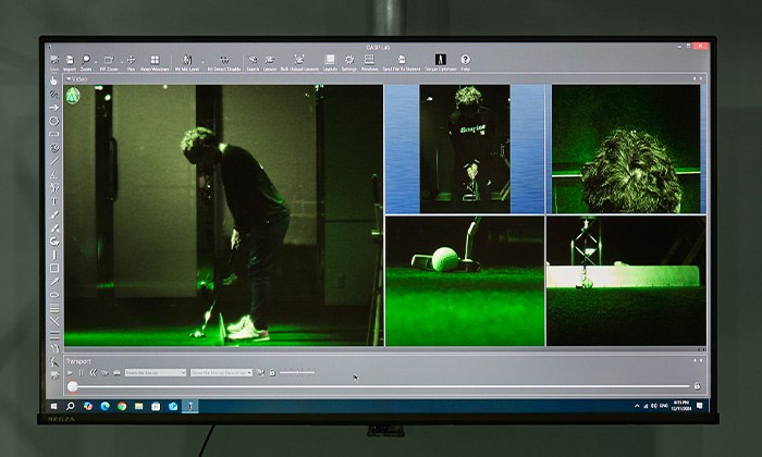 コンピューターと8台のカメラによる超高速撮影で、プレーヤーのパッティングストロークを分析。どのようにフォームをつくり、パターがどのようにボールの転がりに関わっているかをご覧いただき、プレーヤー自身がご自分のクセや欠点を理解、修正していく場です。